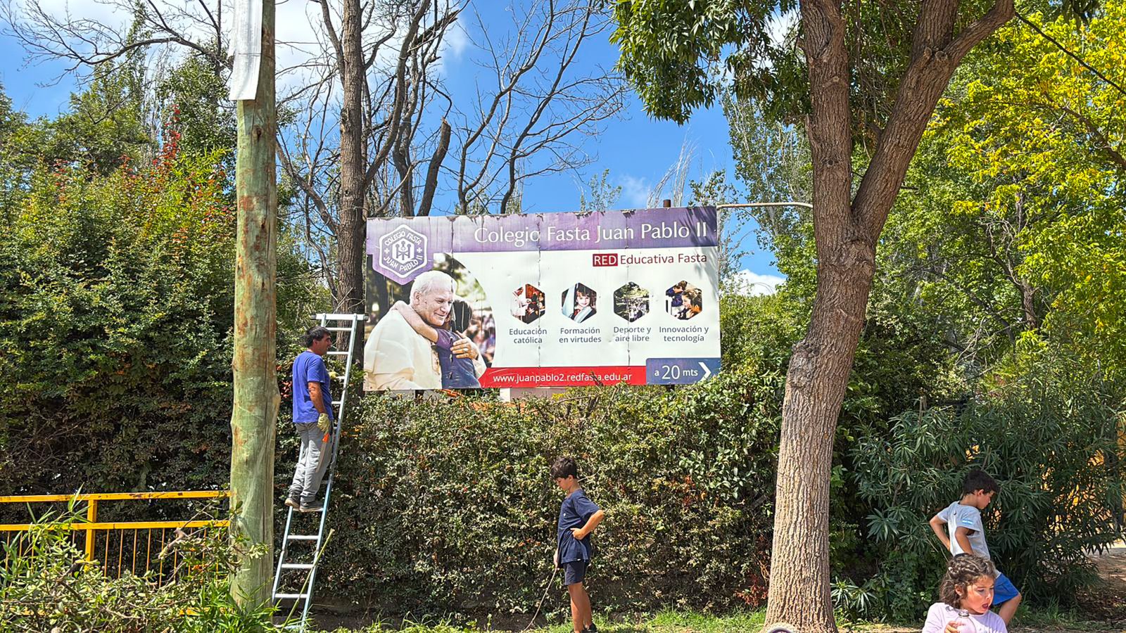 El Colegio Juan Pablo II se caracteriza por una propuesta educativa que integra a la familia como protagonista. Ver a los padres de Luján con pinceles, herramientas y máquinas de cortar césped es la traducción práctica de la misión de Fasta: la colaboración estrecha entre padres y docentes para la formación de niños y jóvenes.
