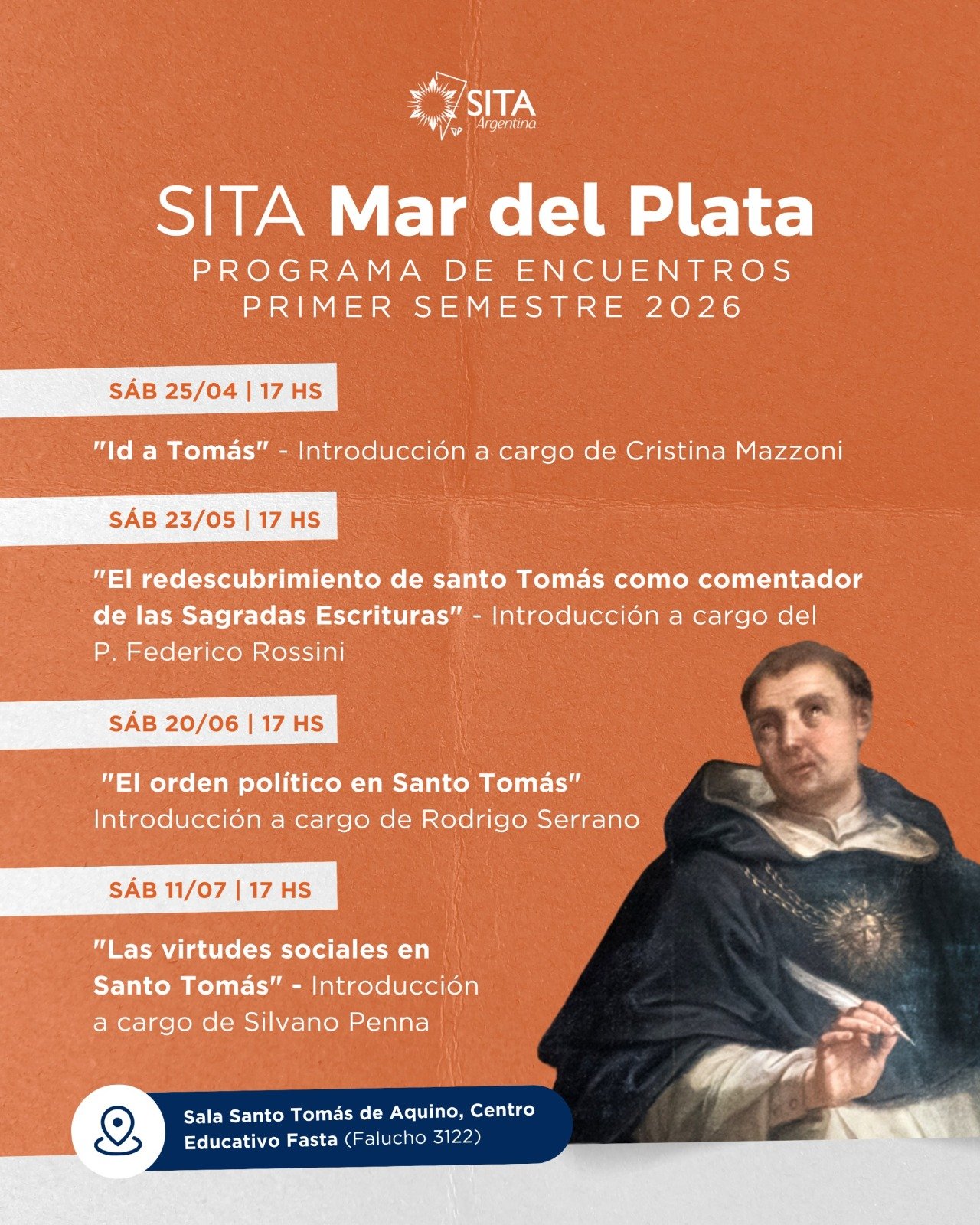 Mar del Plata – 26 de abril de 2026 – Con el firme propósito de profundizar en la sabiduría del Doctor Angélico, ayer sábado 25 de abril se realizó el inicio formal de las actividades de la SITA (Sociedad Internacional Tomás de Aquino) en Mar del Plata. El encuentro tuvo lugar en la sala Santo Tomás del Centro Educativo, espacio que se vio colmado por el interés de quienes buscan en la filosofía tomista una brújula para los desafíos actuales.